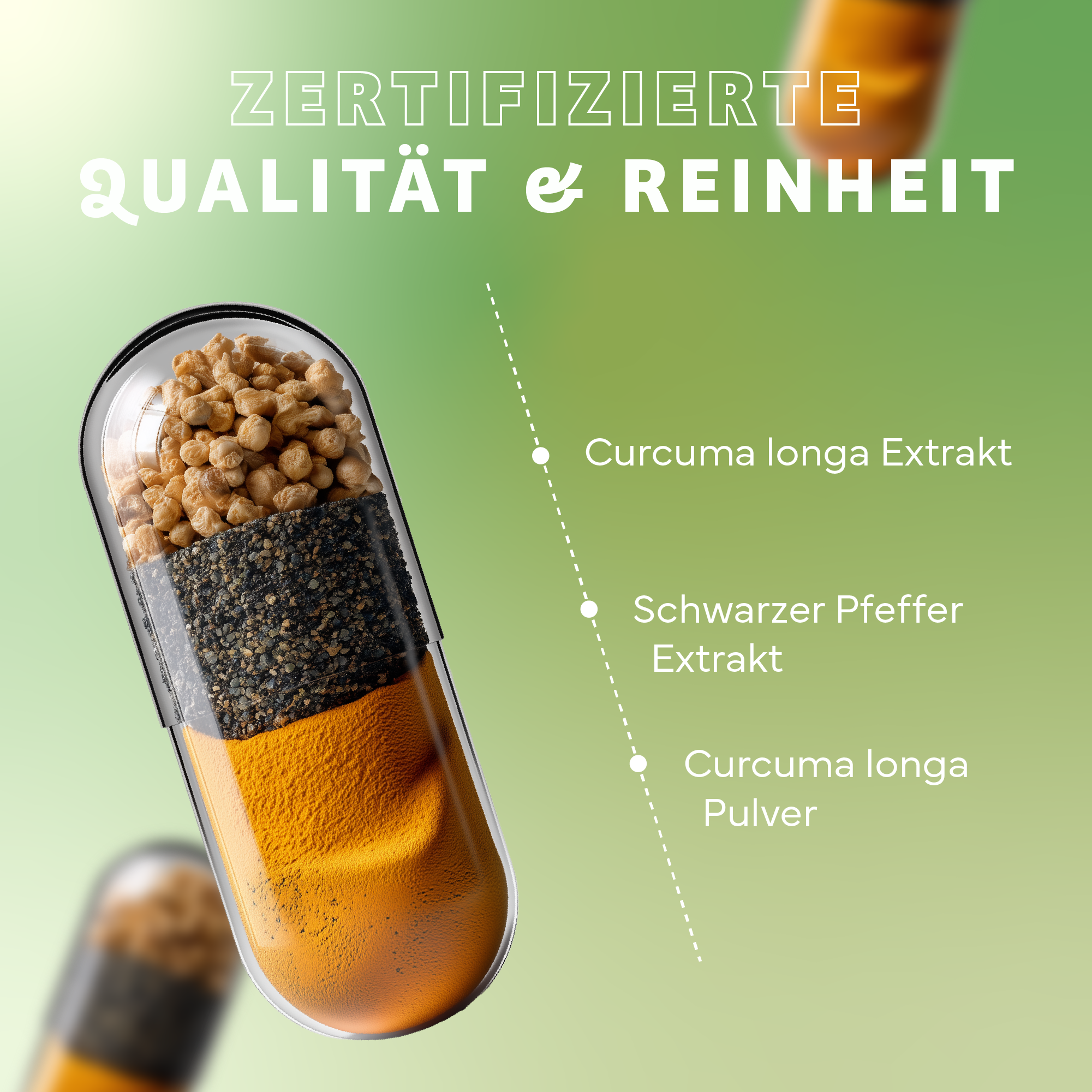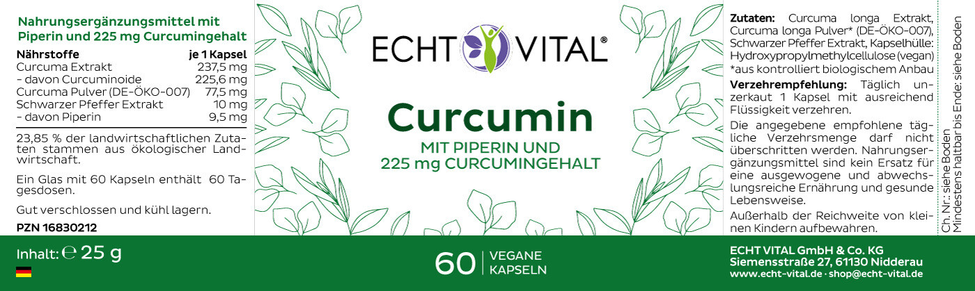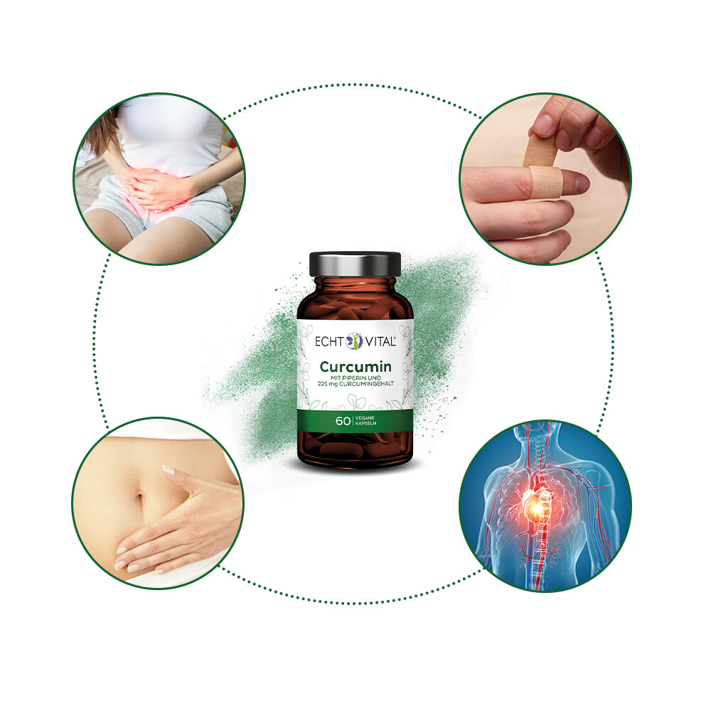 Rein natürliches Curcumin aus der Gelbwurzel mit 95 % Curcumingehalt. Kombination aus Curcumin und Piperin.