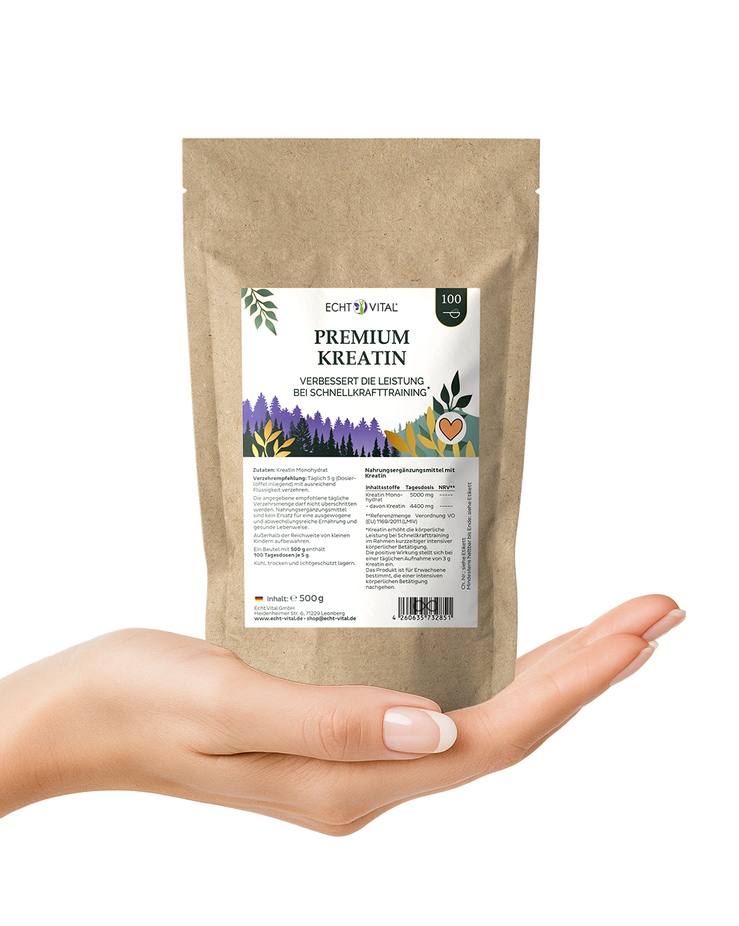 Echt Vital Premium Kreatin - Reines Kreatin-Monohydrat | 500 g, mikronisiert, ohne Zusätze