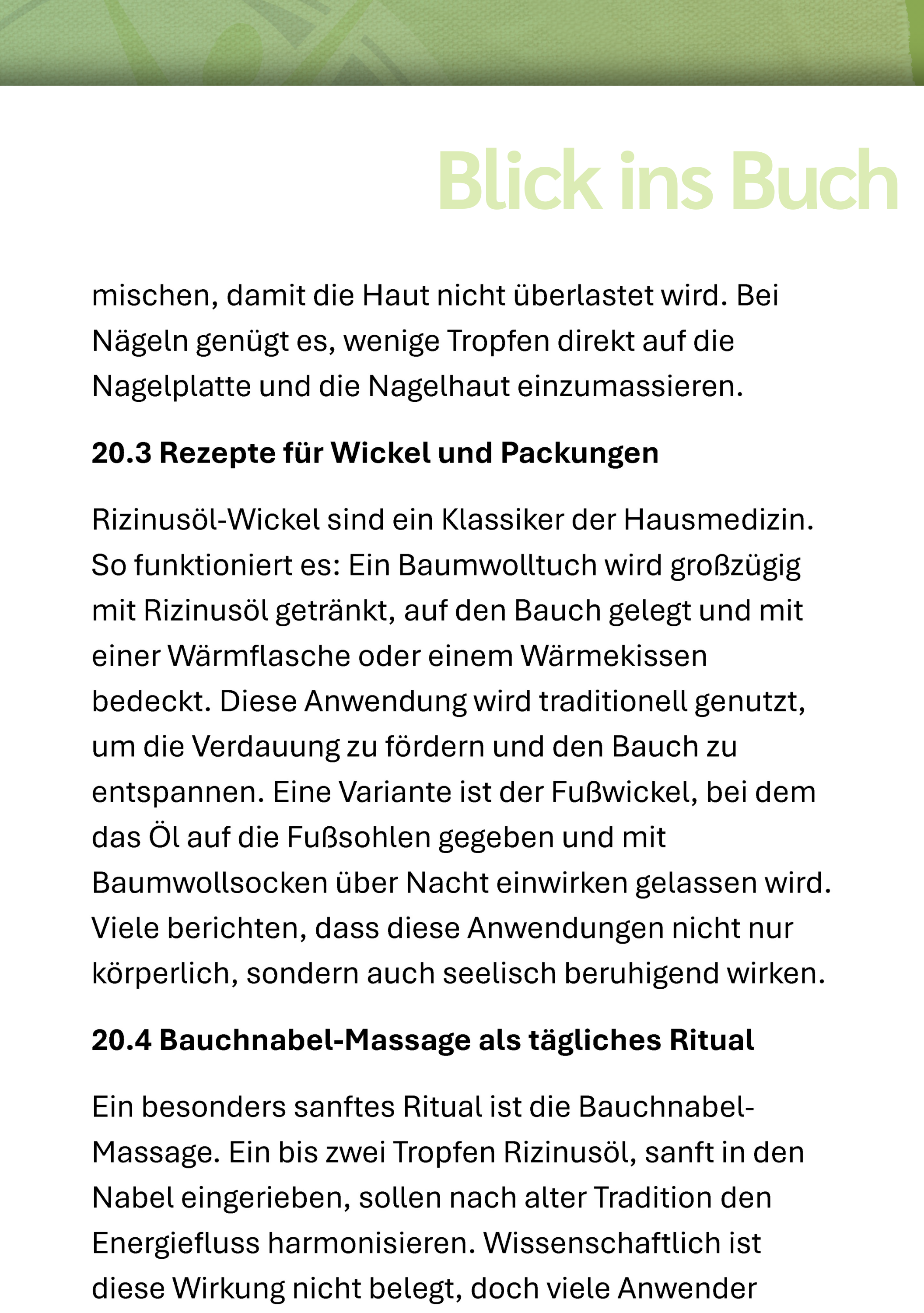 Doch Rizinusöl ist nicht nur ein Relikt vergangener Zeiten. Heute weiß man: Die Ricinolsäure beeinflusst Darm und Haut, stabilisiert den Tränenfilm und ist wertvoll in der Kosmetik. Manche schwören auf ein Ritual: 1 bis 2 Tropfen im Bauchnabel einmassiert. Eine alte Anwendung, die wiederentdeckt wird.