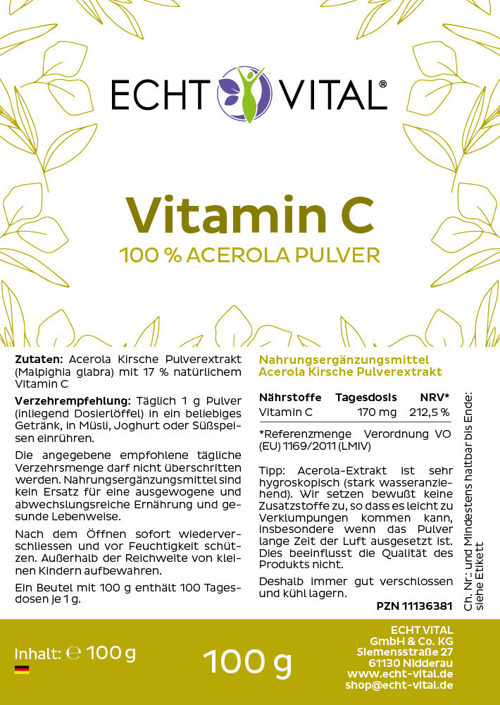 ECHT VITAL natürliches Vitamin C Acerola Pulver