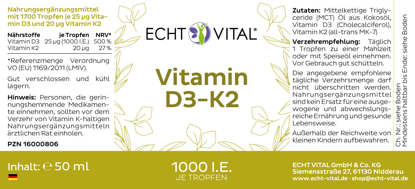 ECHT VITAL Vitamin D3 + K2 Tropfen