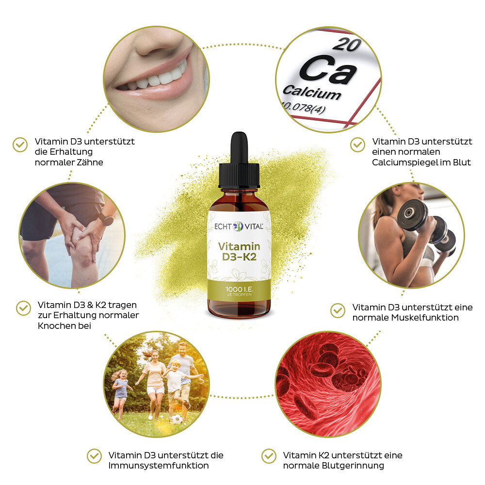 Welche Funktionen erfüllen Vitamin D3 und K2 im Körper?